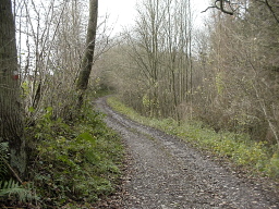 Tout commence par un petit tronçon asphalté que nous quittons sans regret pour un joli chemin passant du bois vers un sentier "rectiligne" balisé de part et d'autre par de basses clôtures électrifiées. Pas encore de pluie, mais un petit vent froid auquel nous échappons dans un joli vallon. Première petite grimpette après avoir passé un tout petit ruisseau que garde une chicane marquée du blanc et rouge.