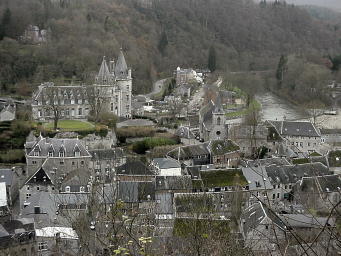 En fait nous échouerons à La Calèche, où le garçon acceptera de nous laisser manger parce que "aujourd'hui, je ferai pas complet de toutes manières". Et deux Durboises, deux !En gravissant la pente qui mène au Belvédère, la ville redevient superbe, les néons se font minuscules, perdus dans une vue générale qui, à elle seule, vaut le déplacement. Si Durbuy est "la plus petite ville du monde", c'est que finalement elle ne mérite peut-être que d'être vue de loin ...