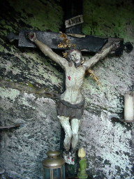 Est-ce "le Bon Dieu de Maka" ? Ça démarre fort. La "rue du Bon Dieu de Maka" (c'est un nom qui ne s'invente pas) grimpe sèchement. Et ce n'est pas la triste figure d'un Christ emprisonné dans la roche qui nous donne envie de chanter. Passé le plus raide, on pense s'en être tiré. Erreur. Même si la pente se fait plus douce, elle grimpe sans discontinuer en passant au milieu des sapins de toutes les tailles. M'est d'avis que certains d'entre-eux garniront bien des foyers l'an prochain à pareille époque.