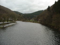 L'Ourthe, au pont de Maboge. La courte pause terminée, c'est un tronçon de la N 860 qui nous mène au bord de l'Ourthe. On la serre au plus près pendant de nombreuses minutes. Rien n'existe plus ici que la vallée, le bruit de l'eau et la superbe lumière qu'un début de janvier anormalement doux nous offre.