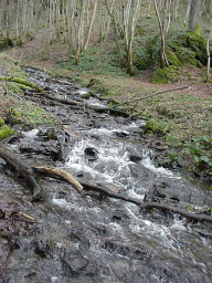 Un petit ru qui alimente l'Ourthe. Et ce n'est pas fini. Ni en termes d'efforts, ni en termes de surprises. Après avoir épousé tous les méandres de la rivière, sur un sentier qui, en quête d'indépendance sans doute, jouait à être plus tortueux que son guide, commence la montée vers le Belvédère du Herou. A nouveau la pente se fait rude. Le chemin est glissant. Et, arrivés en haut, c'est sublime. On se pose là quelques instants. Pour récupérer sans doute, aussi et surtout pour s'en mettre plein les yeux.