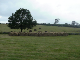 A la sortie d'Aumont-Aubrac, le ton de la journée est donné: panaché de verts pointés du gris des "bols" pour la couleur, pluie et soleil en alternance pour la météo. Le parcours, souvent commun avec le GR 65, est balisé de lourdes croix de pierre. D'un pré à l'autre les sonnailles des vaches d'Aubrac se parlent par-dessus les collines. Les hameaux traversés font penser à l'Ecosse avec leurs imposantes maisons de pierres grises. Si, pour une improbable raison, je devais m'arrêter ici, mes yeux auraient déjà remboursé le voyage.