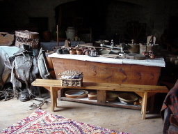 Pêle-mêle se trouvent entassés les rêves de n'importe quel brocanteur. Cela va du chaudron en cuivre à la selle de cheval en passant par les outils les plus divers. Tonneaux, cruches, carafes, touries, crucifix, statuettes de vierge, berceaux pour enfants, pétrins, pressoirs divers, sabots, balances, rouets, horloges, sièges, bougeoirs, paniers, soupières, assiettes, lampes à pétrole, moules à beurre, barattes, tables ... Ne serait-ce l'absence d'un raton-laveur, Prévert serait enfoncé par un tel inventaire.