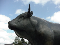 Laguiole n'est pas une ville, pas un village. C'est un magasin à guichets multiples où l'on vend ... des couteaux. Si vous vous trompez de guichet, vous êtes certainement dans un bar ou un hôtel. Sur la place, la statue d'un taureau Aubrac regarde tout cela d'un oeil goguenard.