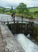 Remplissage de l'écluse de Bénoisey Il faut, disent les guides touristiques, passer aux Granges. Tous en vantent le caractère traditionnel de l'habitat. Je fais donc le détour, puisque j'ai le temps. Espoirs déçus. En fait passer ici n'est vraiment utile que si l'on fait partie du Front de libération des nains de jardins ! Ou alors suis-je passé à côté de la vérité...